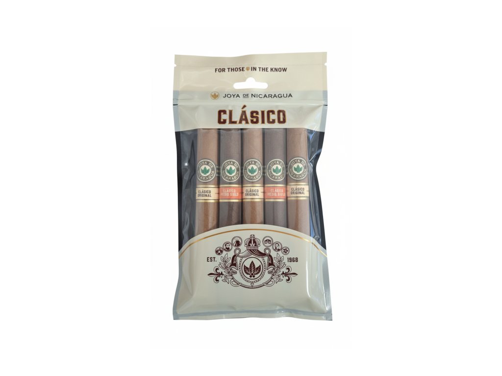 Klasika klasik. Clásico Original je místem, kde to všechno začalo. První nikaragujské puro, které kdy bylo vyvezeno. Nadčasové kouření s vyváženými dřevitými tóny. Clásico Medio Siglo navazuje na tuto tradici a dodává jí hloubku a komplexnost. Společně nám tyto doutníky připomínají, proč se Joya de Nicaragua stal doutníkem těch, kteří oceňují řemeslné zpracování v jeho nejčistší podobě.